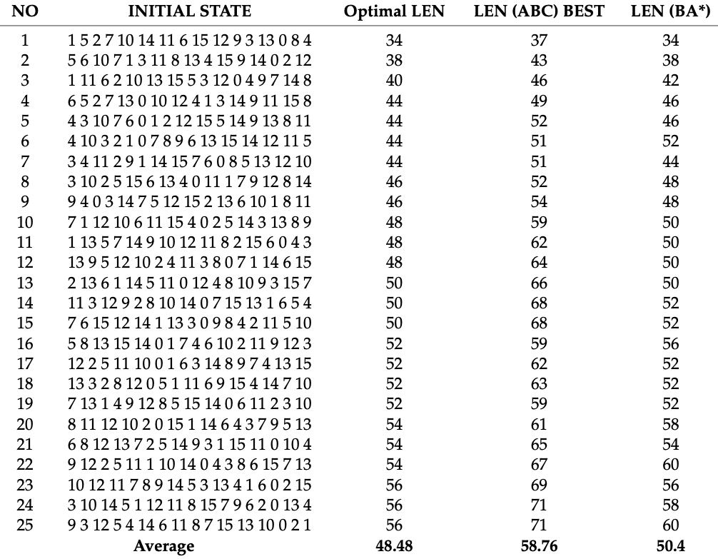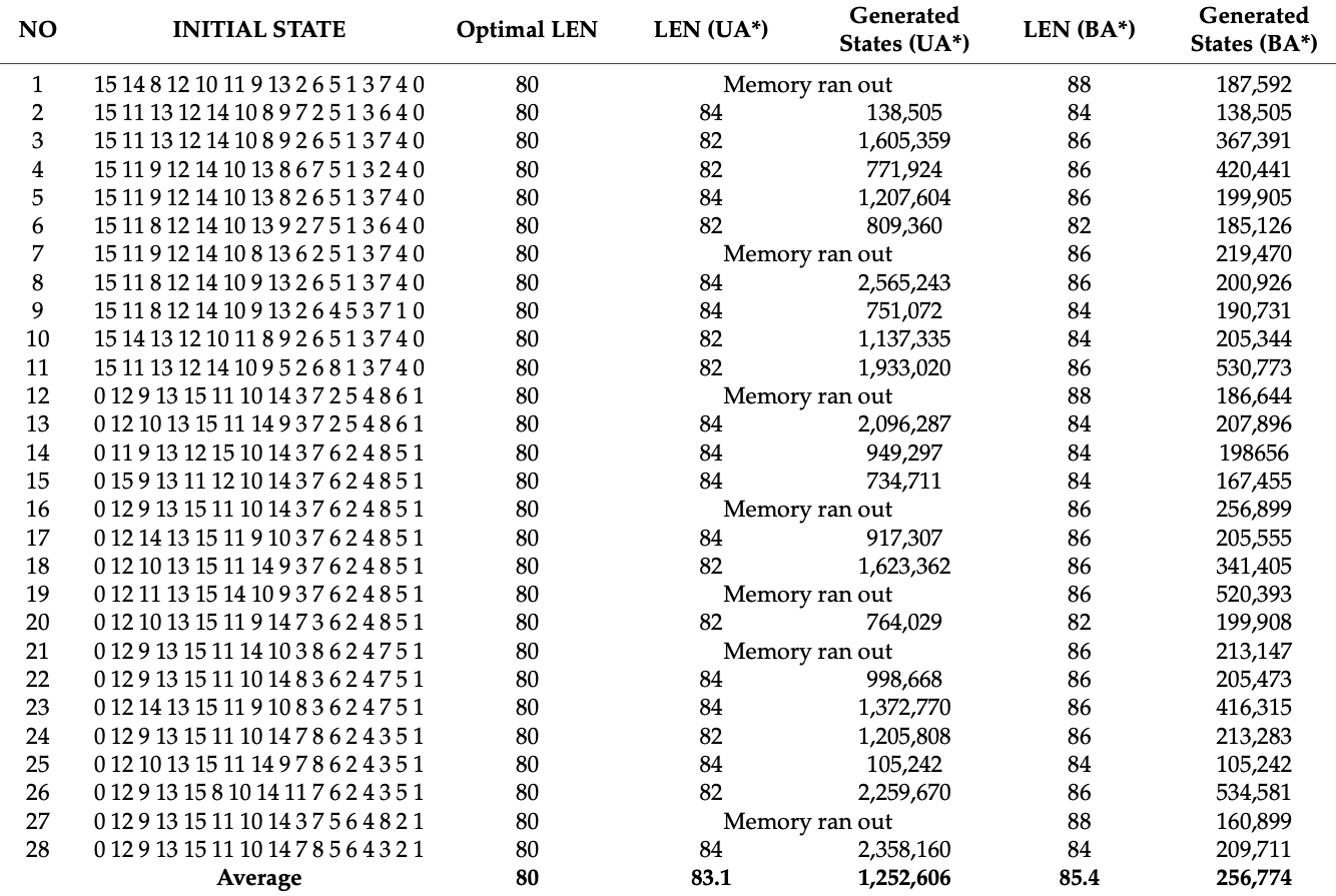 Tabelle 1: Vergleich der BA*-Suche und der UA*-Suche für die 28 schwierigen Fünfzehn-Puzzle-Instanzen, die 80 Züge pdf