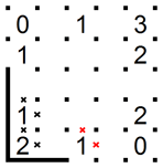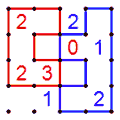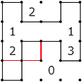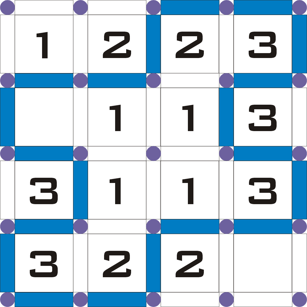 Gute Slitherlink-Puzzles haben eine eindeutige Lösung. In Abbildung 1[3] ist ein kleines Slitherlink-Puzzle dargestellt.