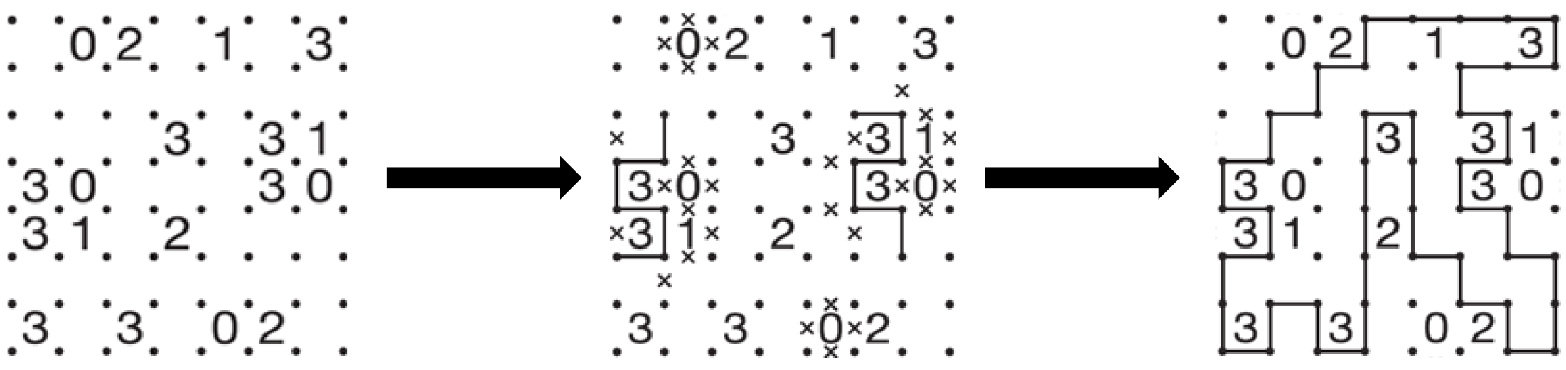 Nikoli. "Slitherlink.” https://www.nikoli.co.jp/en/puzzles/slitherlink/ ↩︎ ↩︎
