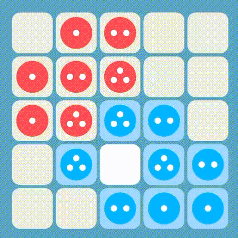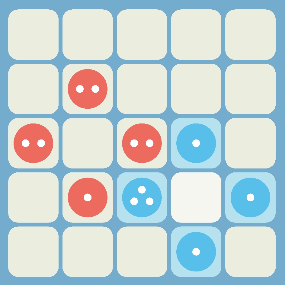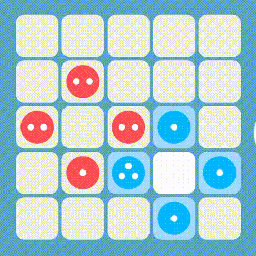Entspricht die Anzahl an Spielsteinen auf einem Spielfeld seiner Kapazität, kommt es zur "Explosion". Das bedeutet, dass die Spielsteine auf die benachbarten Felder verteilt werden. Je ein Spielstein pro Nachbarfeld.