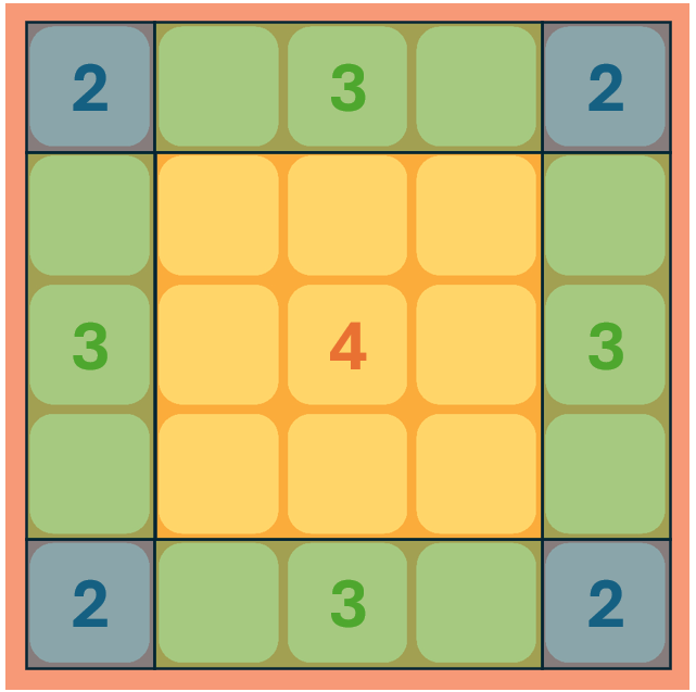 Gespielt wird auf einem Spielbrett. Dabei hat jedes einzelne Feld eine Kapazität in Höhe der Anzahl seiner Nachbarfelder. Zwei Felder gelten als benachbart, wenn sie mit ihren Kanten aneinander grenzen.