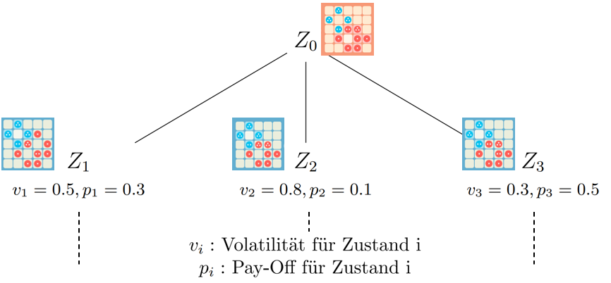 Jedem möglichen Spielzug wird ein Pay-Off und eine Volatilität zugewiesen.
