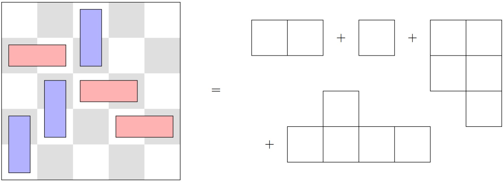 Abb. 6: Domineering-Stellung mit Temperatur 2, Zerlegung in zwei Komponenten.