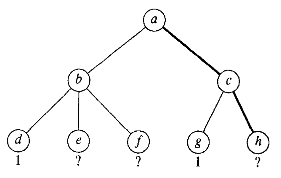 h ist der vielversprechendste Knoten, denn sollte sich h als Gewinnposition für Weiß erweisen, hätte Weiß von Position a aus eine sicher zum Sieg führende Zugmöglichkeit und somit das Spiel gewonnen.