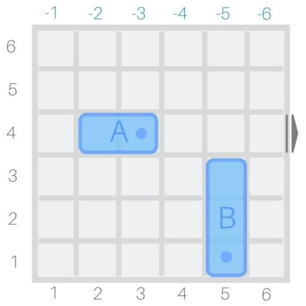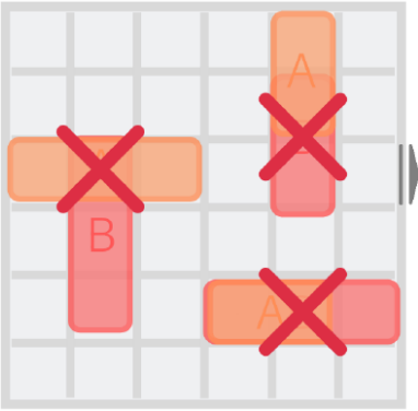 Eine Allokation ist eine Menge von Tripletts , wobei die Platzierung von Fahrzeug beschreibt. Eine Allokation ist gültig, wenn alle Fahrzeugteile auf dem Gitter liegen und sich keine Fahrzeuge überlappen.