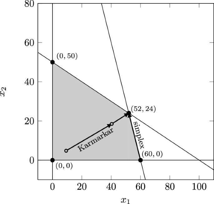Karloff, H.. Karmarkar’s Algorithm. In: Linear Programming. Modern Birkhäuser Classics. Birkhäuser Boston. 2009 url ↩︎ ↩︎